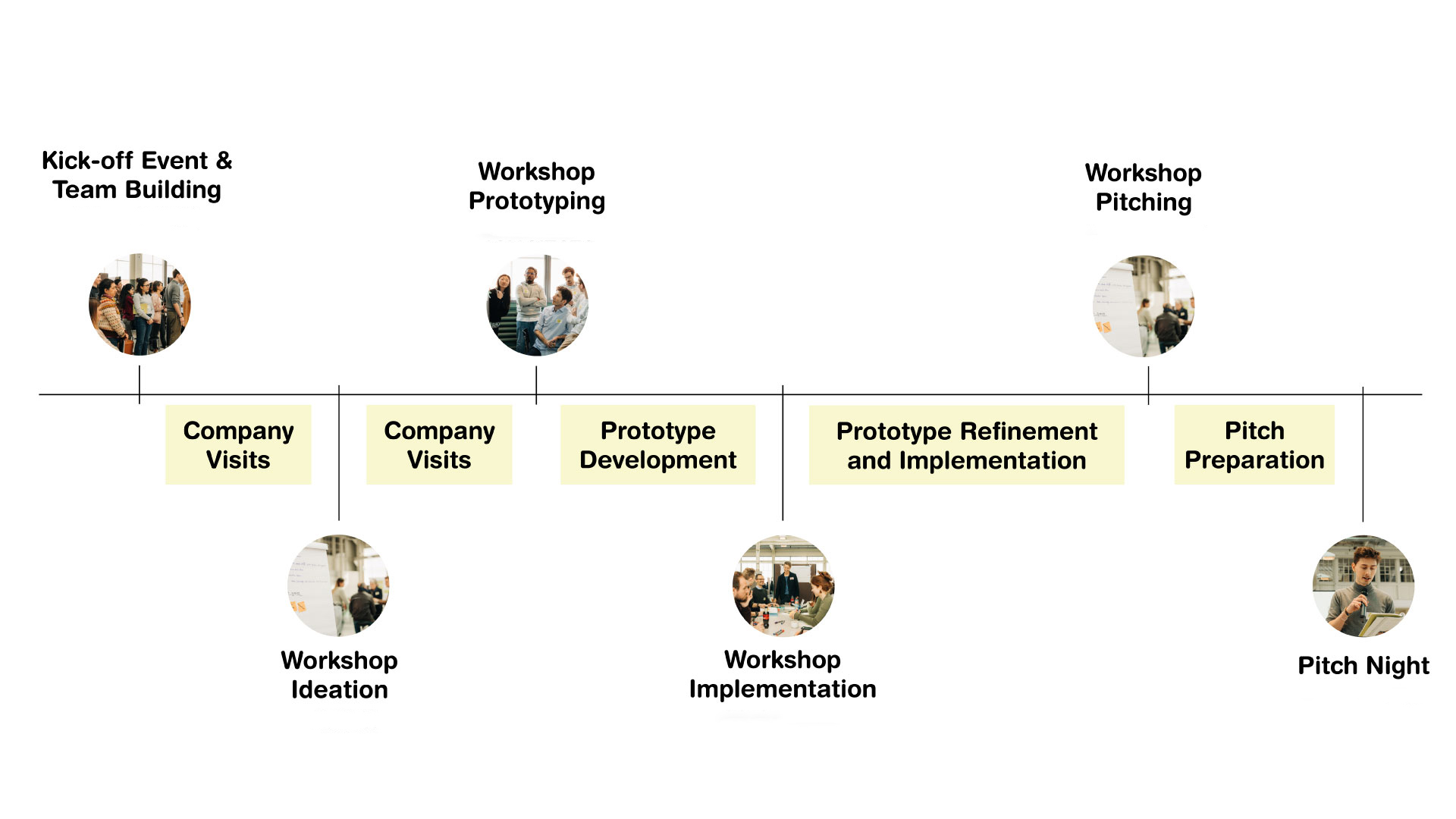 - Final Pitch Night: Die Teams präsentieren ihre Innovationen einer Expertenjury und einem Branchenführer und erhalten konstruktives Feedback.